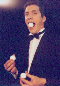 Le prestidigitateur est l'un des jumeaux "Les Frères CORRADI" (numéro de prestidigitation comique vu sur de nombreuses chaînes de télévision françaises et étrangères).